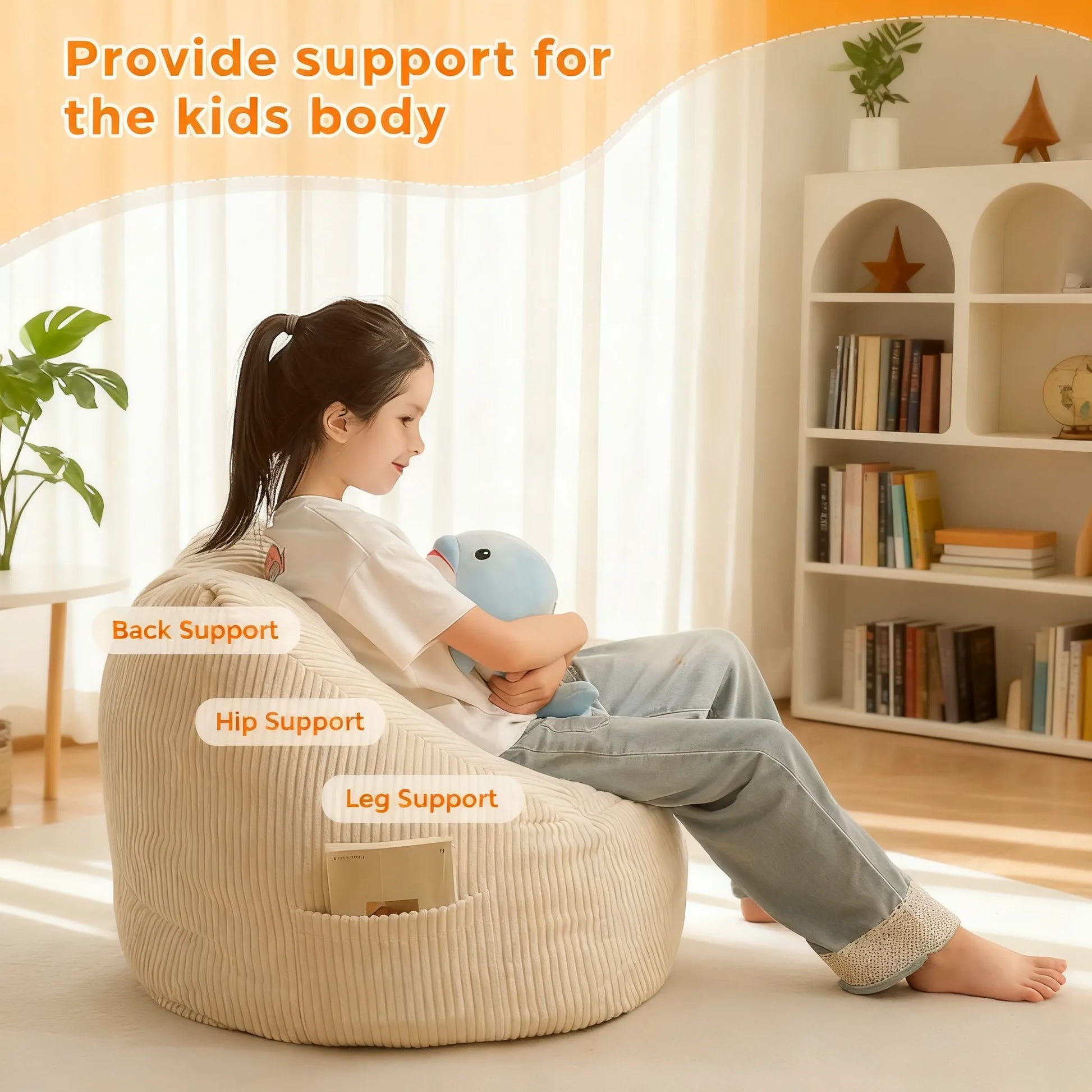 Cozy Corduroy Kids Bean Bag Chair with Supportive Design