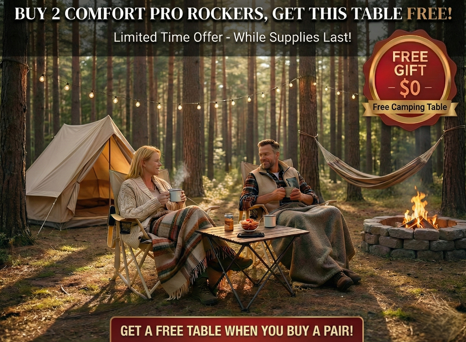 Upgrade your outdoor oasis. Buy 2 Comfort Pro Rockers and we’ll throw in the Foldable Side Table for FREE—the perfect setup for your next sunset.
